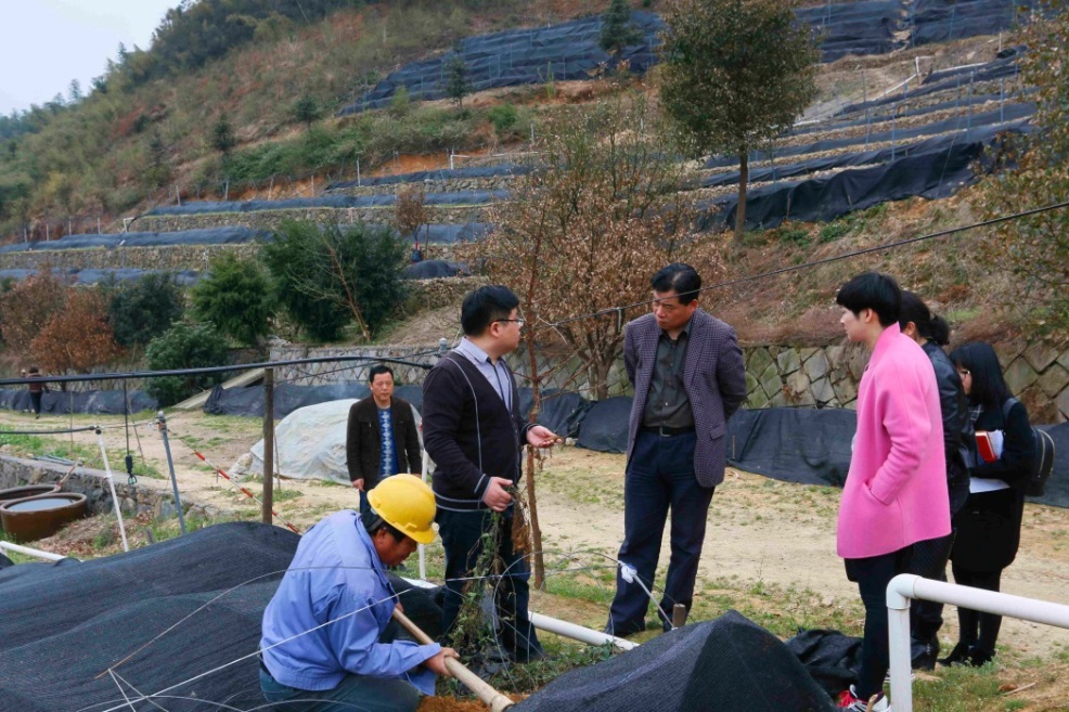 3月23日,省农业厅副厅长唐冬寿一行,在余杭区农业局和百丈镇政府领导陪同下,考察了十佳大学生“农创客”许鑫瀚的杭州三叶青农业科技有限公司的三叶青种植基地。